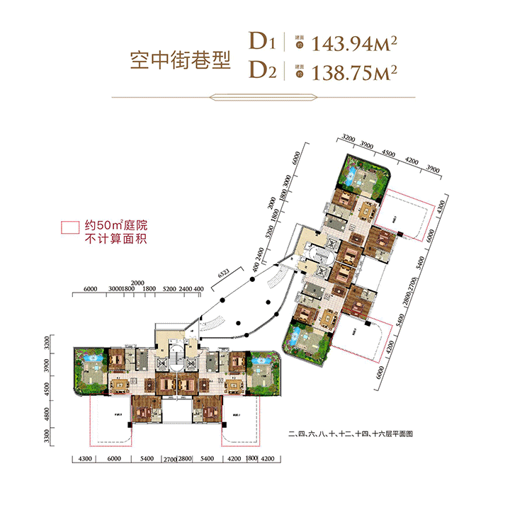 太子湖国际社区建面约138.75㎡—143.94㎡的空中街巷型