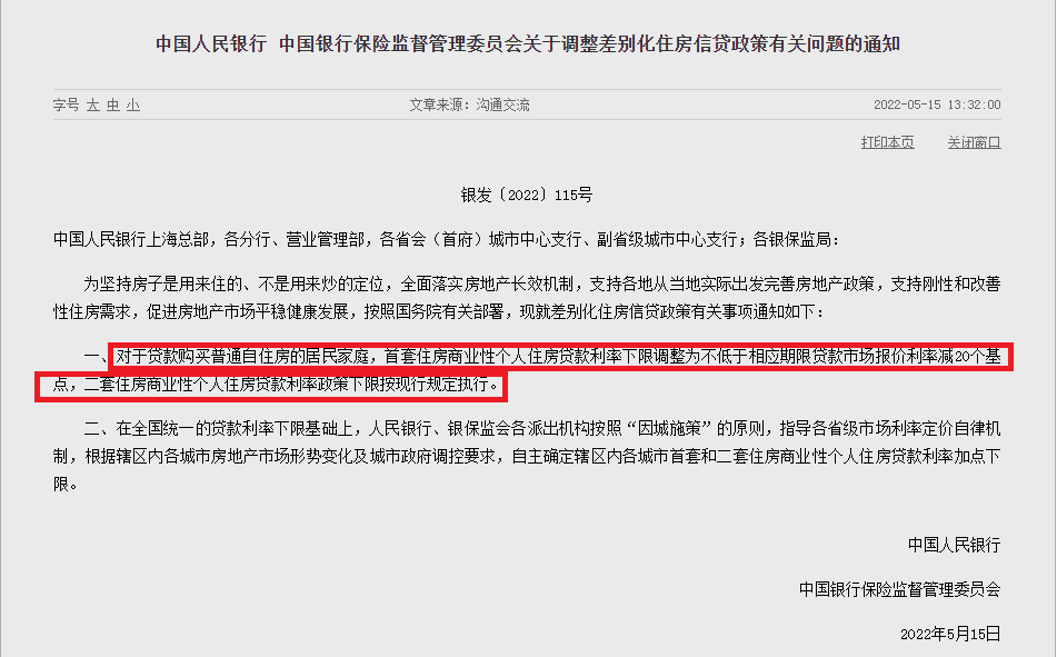 2022年5月15日,央行、银保监会官宣