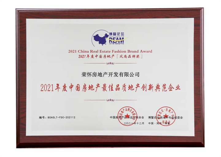 通过荣怀地产的不懈努力,“荣怀·及第世家”项目曾在2021年获得过“2021年度中国房地产最佳品质地产创新典范企业”、“2021年度中国十大品质宜居典范楼盘”等多个奖项。