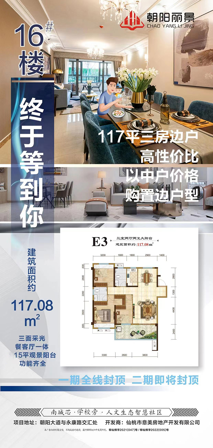 在南城新区的其他楼盘建面约110㎡左右的户型都是中户且价格都超七千的时候,朝阳丽景可以让你用七千左右的价格买到边户!朝阳丽景16#楼推出的建面约117㎡的户型,可谓是给许多想买边户但预算不多的购房者带来了福音。