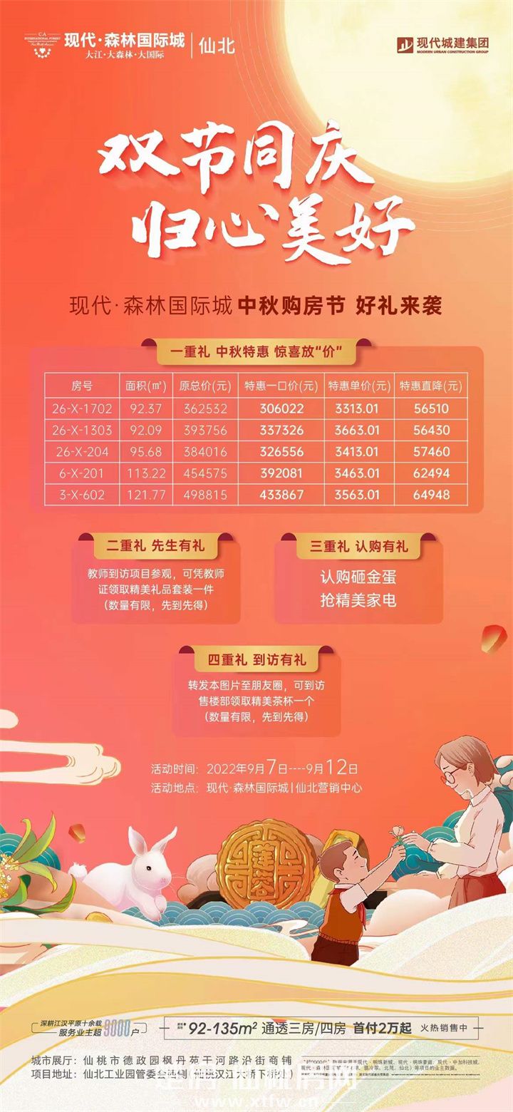 为回馈新老业主们,特推出中秋福利,惊喜放“价”,5套特价房,总价直降6w