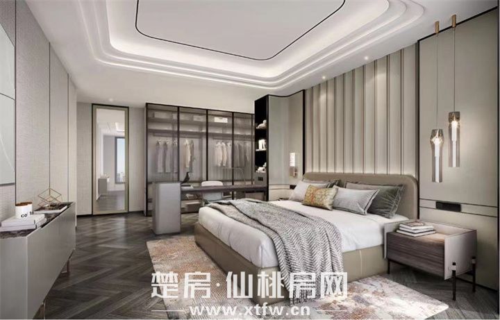 主卧私享独立卫浴,干湿分离设计,日常盥洗更便捷,同时保持室内洁净干燥,给予家人一个健康舒适的居家环境;独立衣帽间合理收纳衣物,随心穿搭,让主卧成为家里的时尚主场。