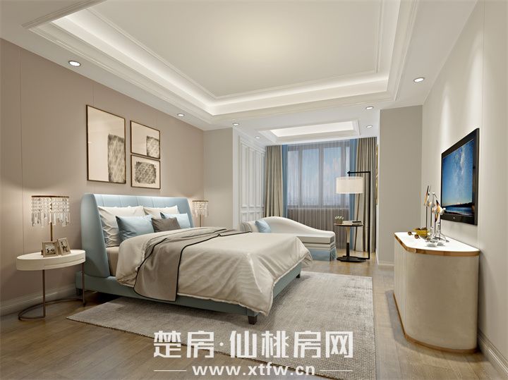 二人世界——主卧是夫妻的休憩空间,次卧则可变成轻奢的影音娱乐室与主人的书房。三口之家——相邻的南向次卧则可作为儿童房,方便时刻照拂,同时也留有私密空间让孩子独立成长。