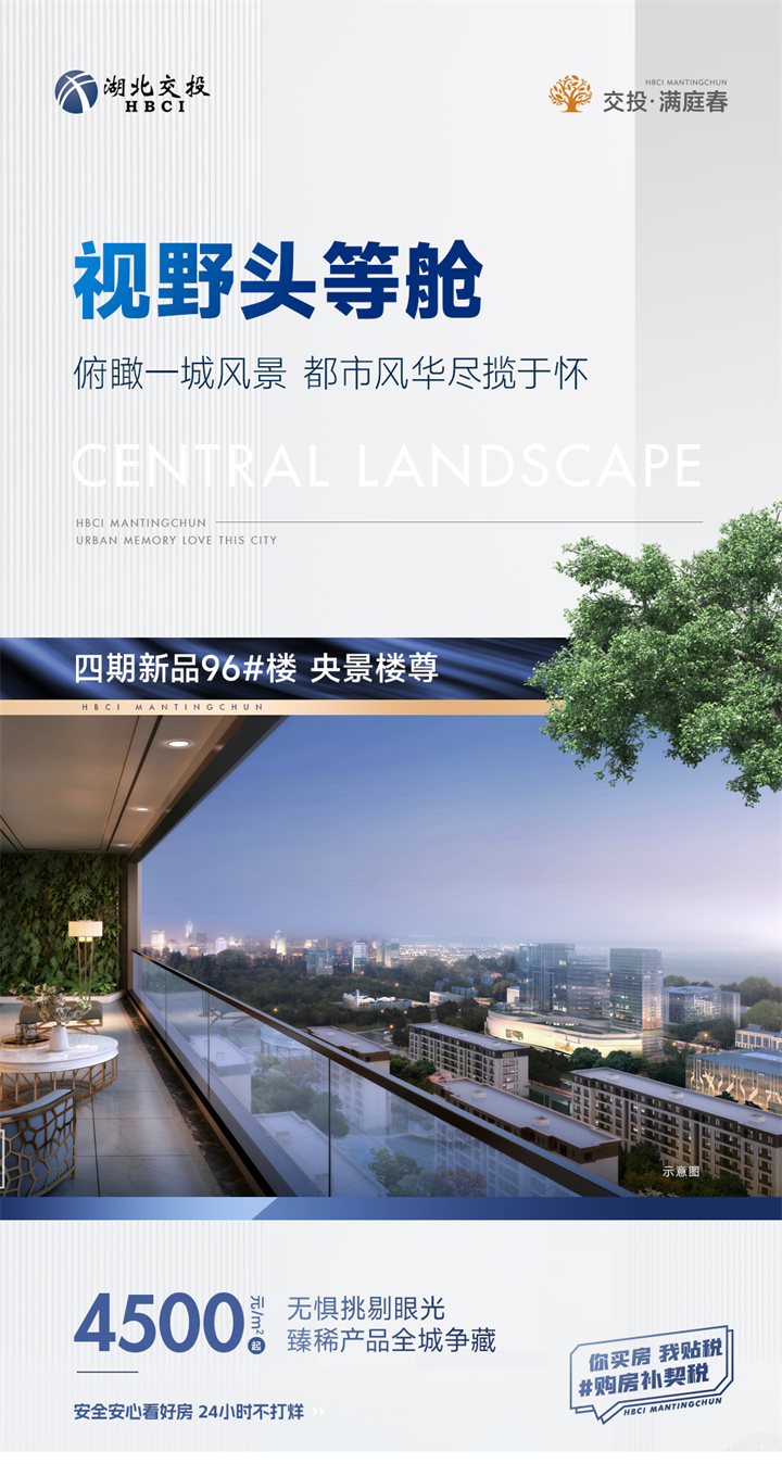 交投·满庭春四期96#楼,瞰景头排,充分考量业主隐私与视觉舒适度,保障必要的光照、通风、观景,秉承了建筑与自然嵌合的理念。