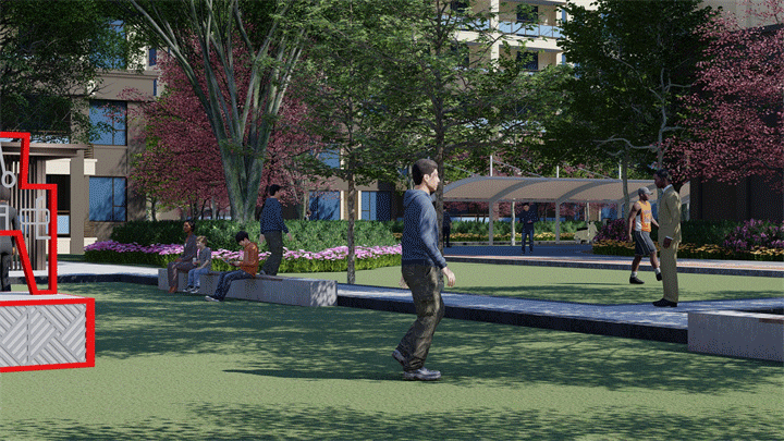在社区内建有约设计中央会客厅、环形跑道、阳光草地