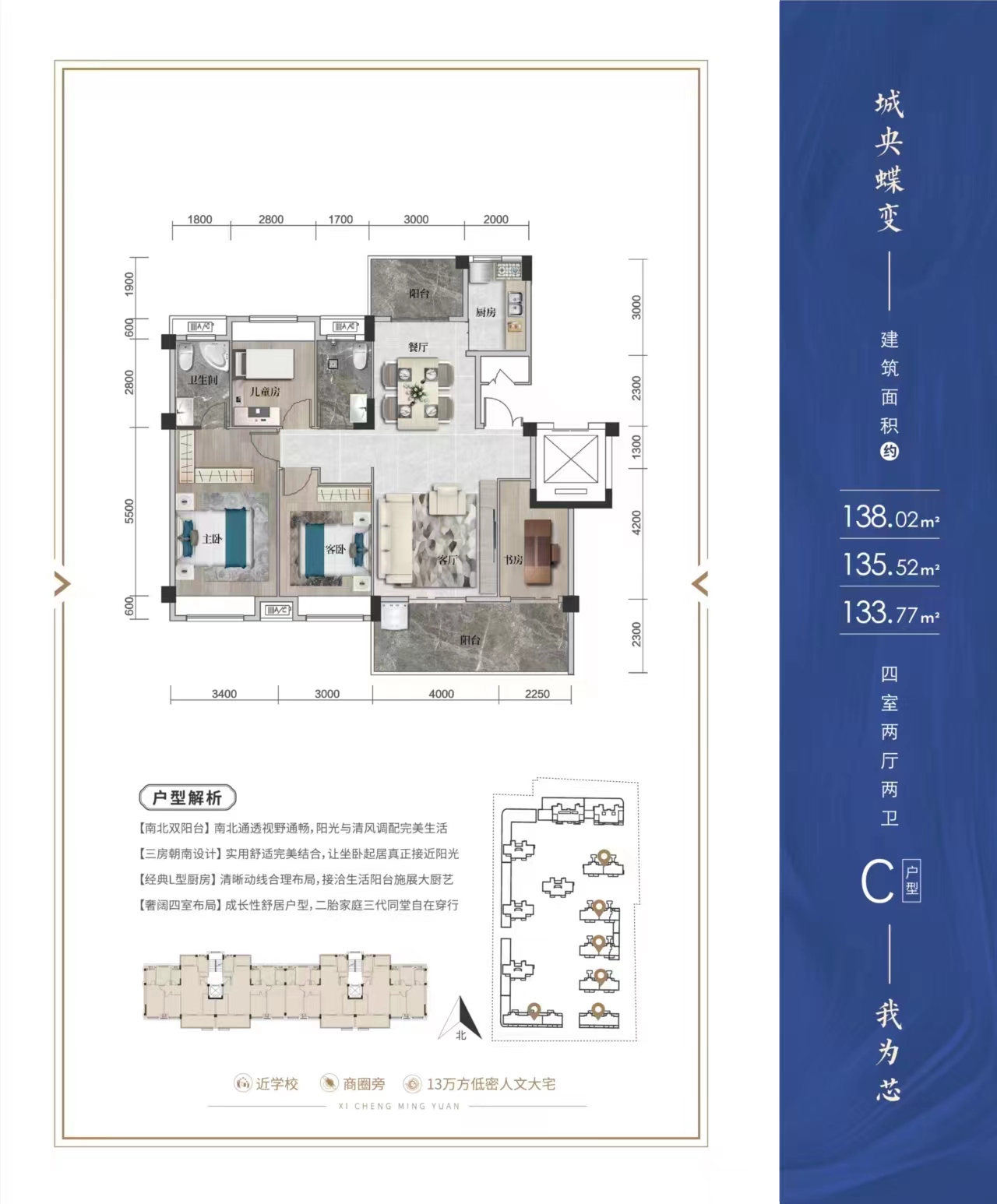 西城名苑项目此次推出的4栋楼,在售户型面积从建面74-138㎡不等,其中16#楼为8层电梯小高层,房源为建面约133.77㎡四室;13#楼为总高26层的高层,户型为108.7㎡/116.02㎡三室;18、19#楼为27层的高层,户型为74.81㎡两室、96.43㎡/110.92㎡/112.05㎡三室。