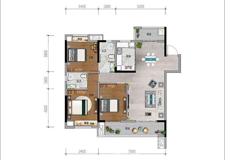 南向约3.4米开间搭配阳光飘窗