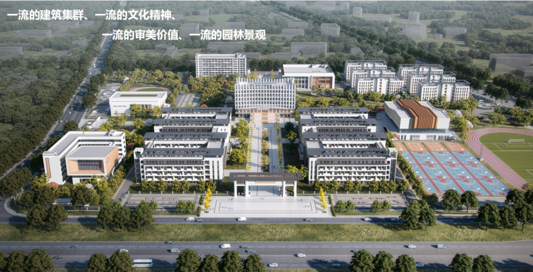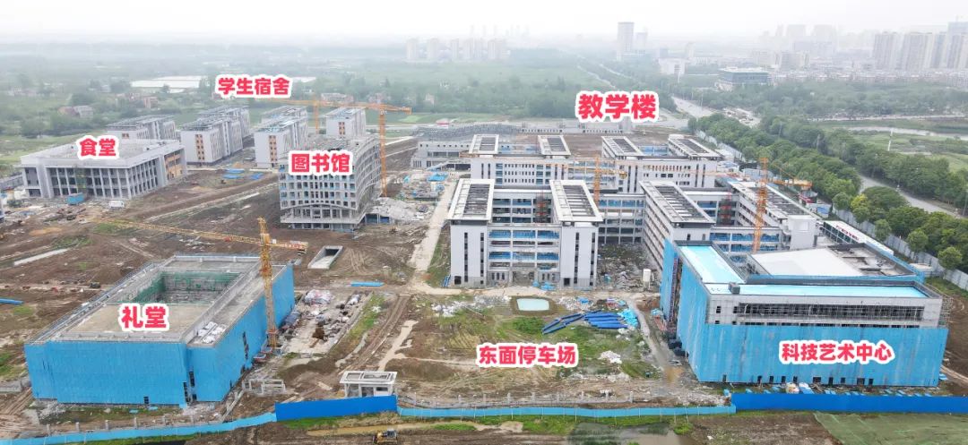 仙桃中学新校区,规划3栋教学楼,6栋学生宿舍,2个田径场,实验楼、体育馆、图书信息楼、科技艺术中心、礼堂、食堂、教师值班房等教学配套设施各1栋,共有4个大门。预计可设立90个教学班,每班50人,共计4500名学生,拟定于2024年9月开学。