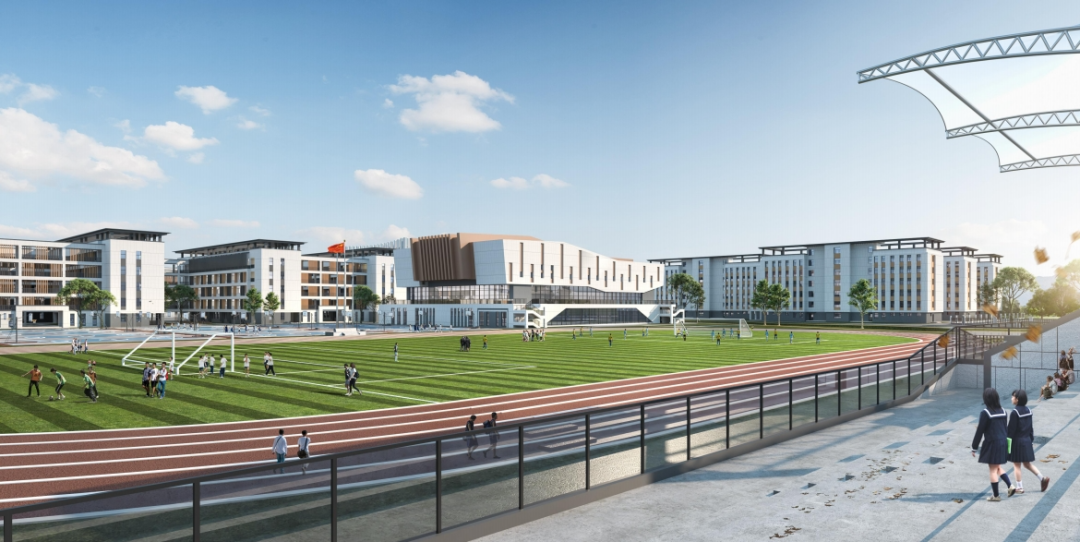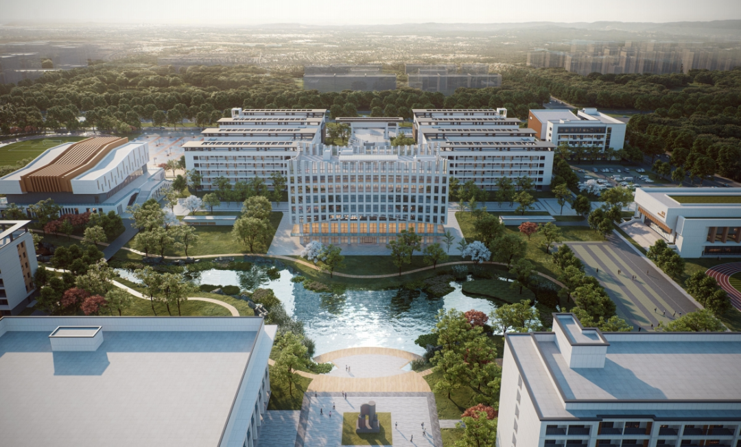工程规模:规划办学规模为90个班,每班50人,总学生人数4500人。项目总用地面积262336.33㎡,总建筑面积132842.69㎡,其中计容建筑面积126705.84㎡,地下建筑面积6136.85㎡,建筑密度16.49%,容积率0.66,绿地率35.01%,非机动停车位3449个,机动车停车位610个。主要建设内容包括学生宿舍楼、教学综合楼、礼堂、科技艺术中心、图书信息楼、教师值班房、运动场、足球场、篮球场等其他配套。学生宿舍楼6栋,共提供住宿床位2808个,教师值班房302间。其中宿舍楼、教学楼与食堂之间配备风雨连廊,下雨天为学生出行提供便利。
