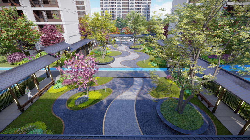 所以,好处就是:下雨不需要打伞,夏天还可以遮阳,而且还通风,随时随地穿梭在各个区域。下雨天,遛娃、遛狗、简单的运动、社交都可以在风雨连廊进行;学生上下学,也不用再打伞,可直接连接到单元门,为学生出行保驾护航。