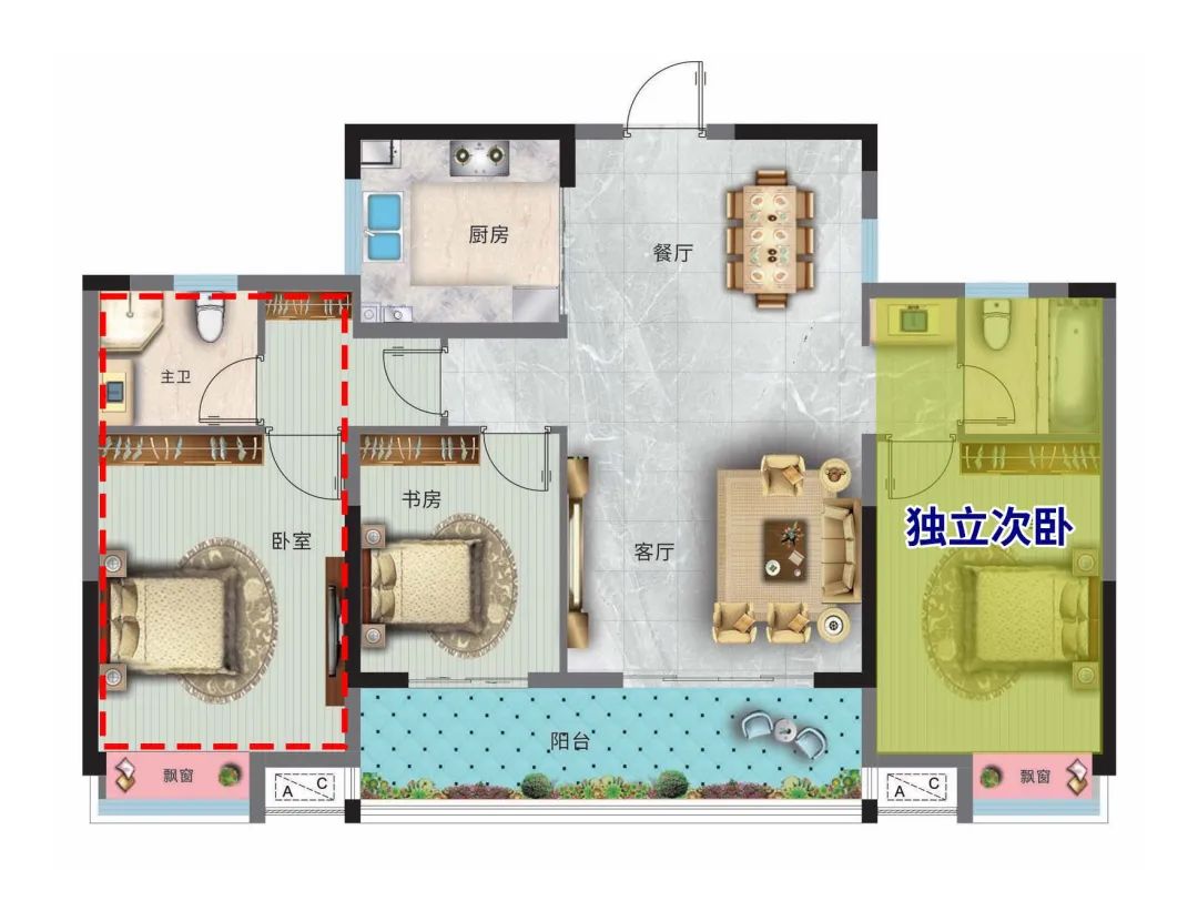 南向双卧设计,进一步升级了家人们的舒居系统,夫妻、父母、子女之间存在尊重,即使是生活习惯不同的家人,也可各得其所。