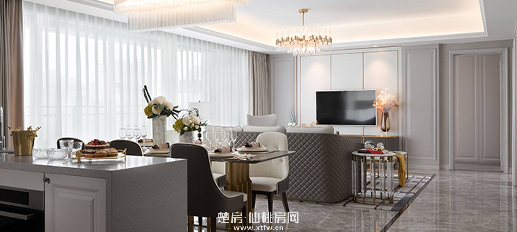 水云间五期,建面约109㎡三居,横跨南向客厅与卧室两大空间近7米的贯通式双联阳台,即增加了客厅的空间感,跃升业主气度、空间尺度,也为卧室增加了扩展视野,节约室内空间,让生活更从容便捷,多一份温馨与舒心。