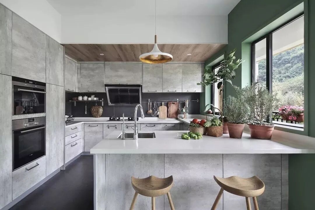一层是热热闹闹的“生活主场”:中西双厨的设计简直是“吃货福音”,中式灶台火力够猛,做一碗妈妈味道的红烧肉喷香入味;西式台面上揉面烘焙,烤出孩子最爱的奶油蛋糕,两种烟火气互不打扰,香味在餐厅里交织成幸福的味道。逢年过节,一大家子围坐在餐桌旁,再也不用挤在小客厅里“转不开身”。