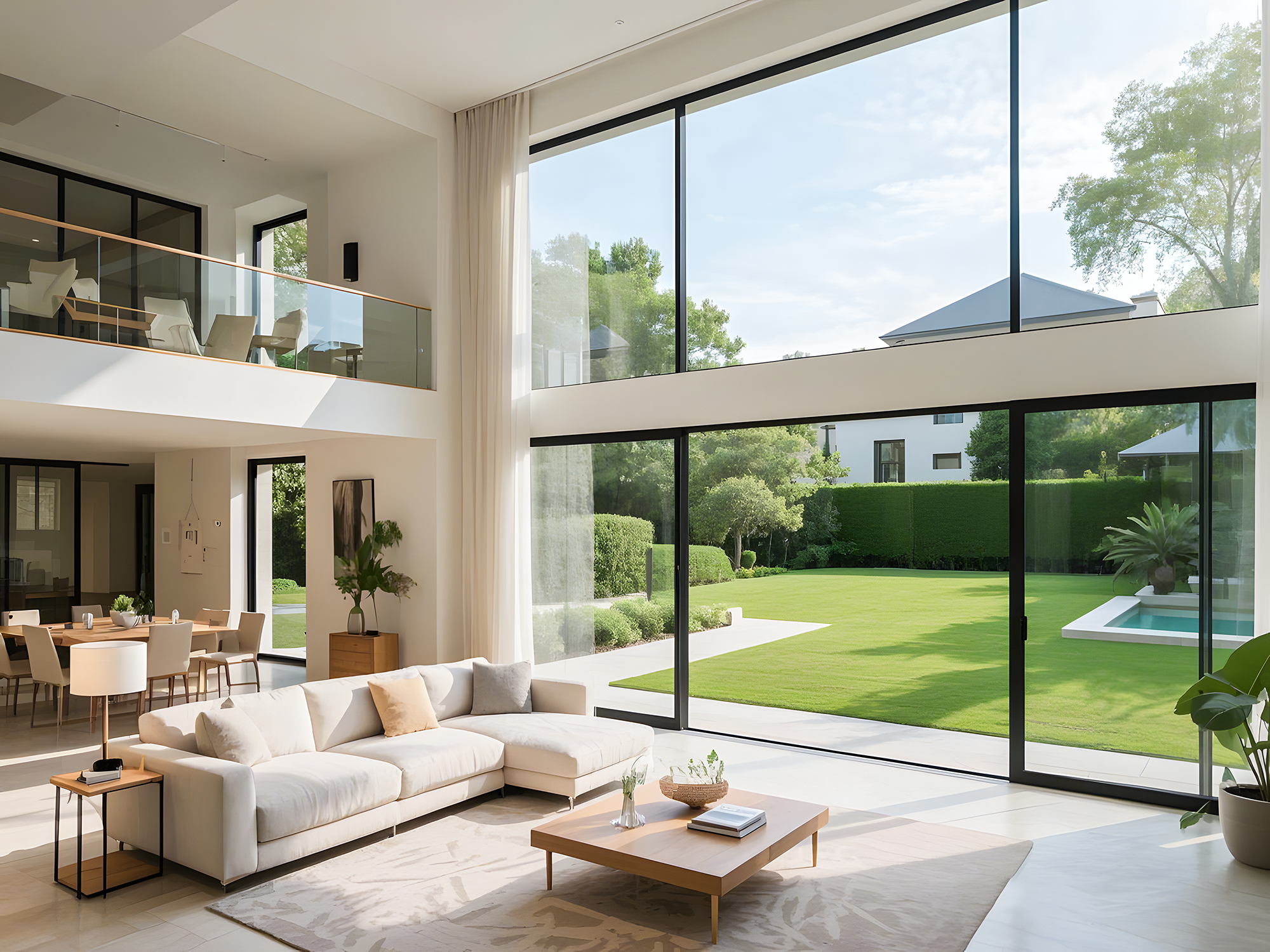 同样,叠墅配备超10米无界面宽横贯客厅与观景区,形成开阔的采光与观景面。正午时分,阳光可无遮挡地铺满室内;傍晚凭栏远眺,社区内的落日景致与绿植风光尽收眼底。