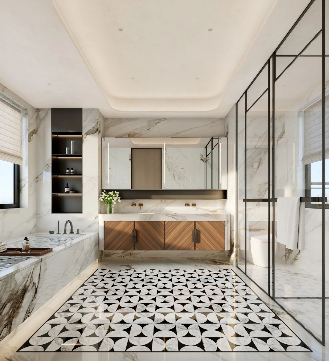 在合院的顶层,汲取五星级酒店行政套房标准,为主人打造奢藏级私家领域,独占整层空间,不受任何人打搅。超百平广阔领域,足够容纳独立起居厅、阳光书房、独立衣帽间、奢华卫浴与星空露台。在这里,可于书房静思阅读,沉淀内心;可于奢华浴缸中卸下疲惫,享受独处时光;亦可将大露台改造为主人的户外健身天地、私人露天酒廊,更可以在此叠山理水,打造一座空中园林,坐拥约270°环景视野,无限遐想,任君驰骋。