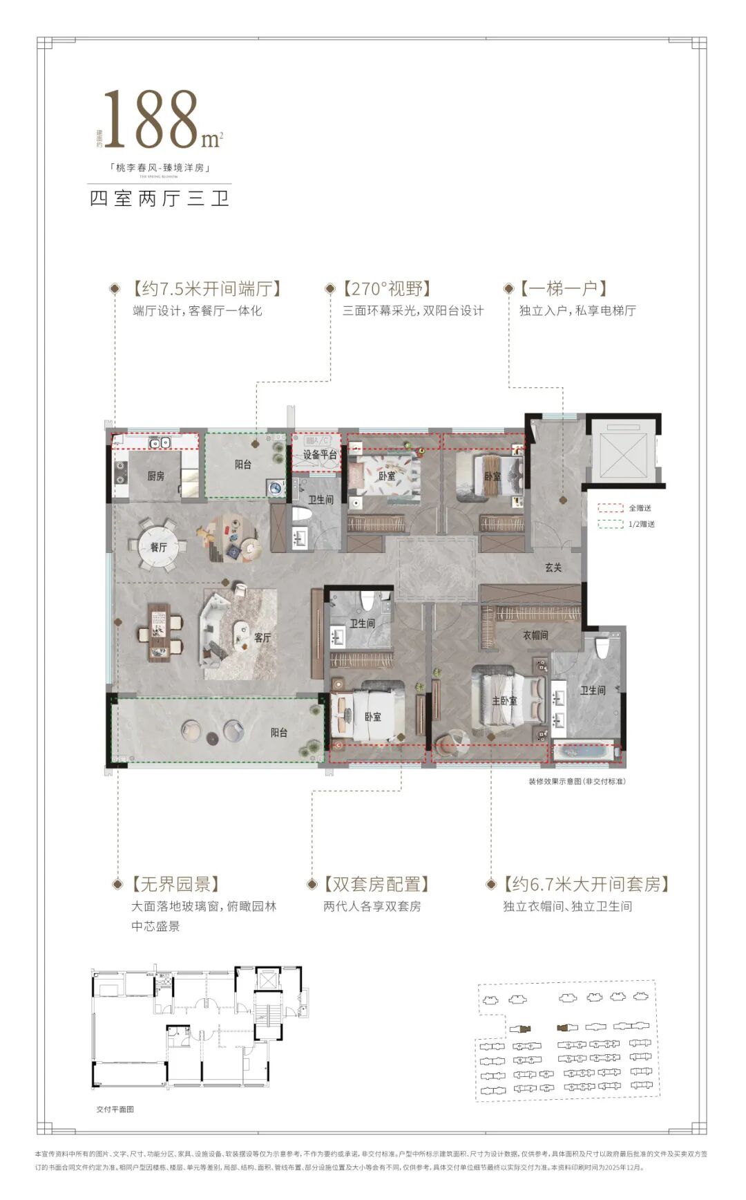 绿城·桃李春风,建面约143-188㎡臻境洋房,以“平墅”理念进行空间重构,将别墅的尺度感、功能性与仪式感巧妙融入,更大化释放居住空间价值。