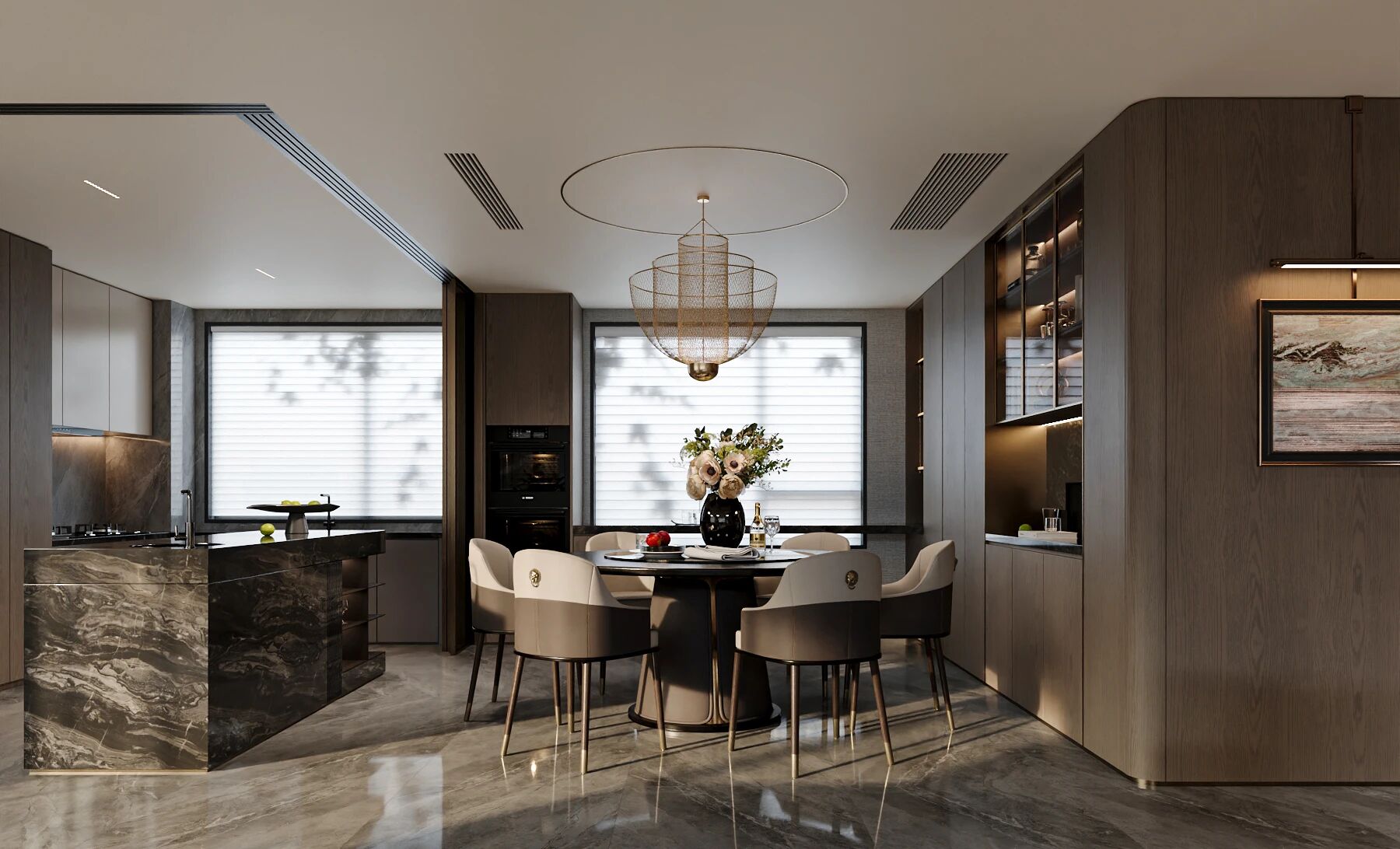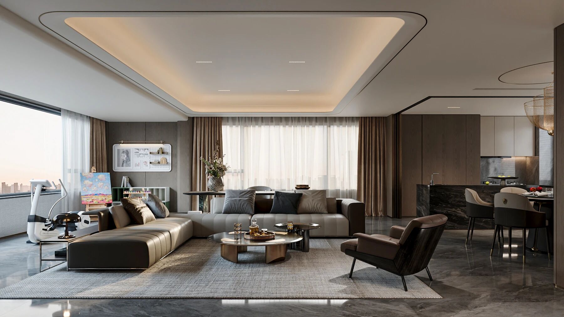 人生不应设限,空间亦然。LDKB 一体化墅级通厅,宽阔尺度大横厅配置,可是同频社交的优雅场域、也可是团圆温馨的家庭剧场,一方空间的高度利用化,让多重场景于家中美好呈现,以不凡尺度展大宅风度。邀友宴客、亲子互动或家庭影院模式随心切换,让空间承载生活的无限可能。