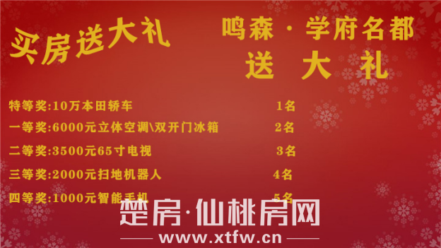 4.20日起凡在学府名都购房的客户均有机会抽取大奖,4.20日起购房成交人数满15名,即可抽奖,保底千元智能手机,更有机会抽取价值十万元的本田汽车!(仅限4.20日-5.31日!)