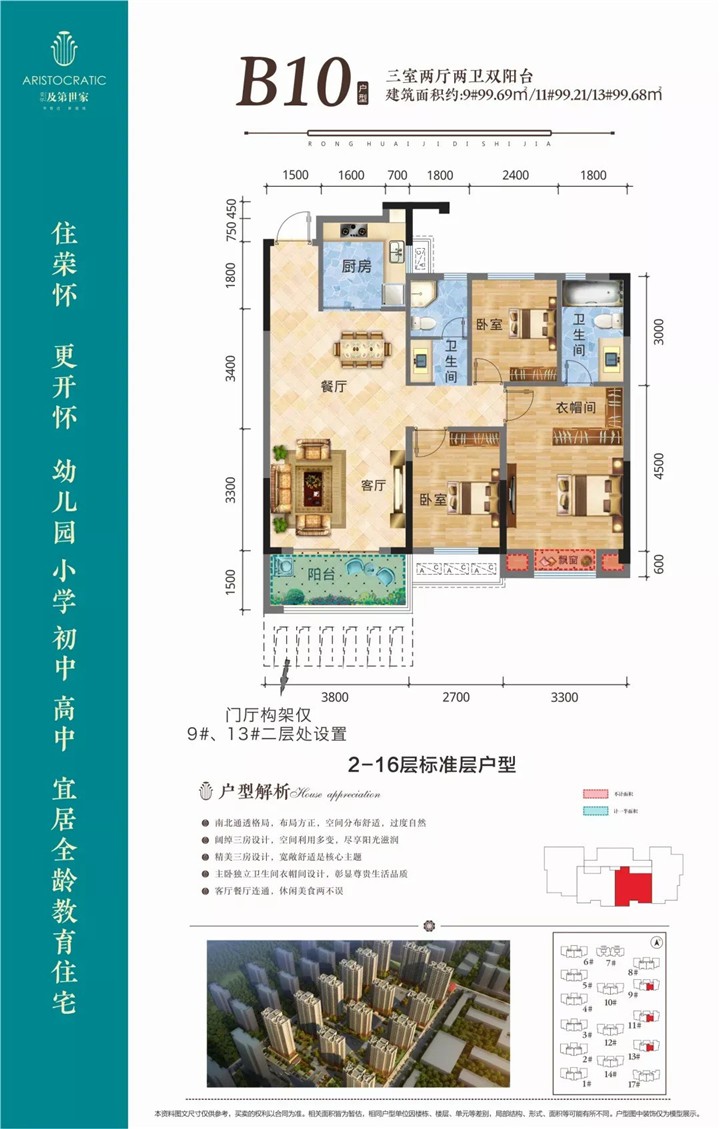 荣怀·及第世家位于前通路与朝阳大道交汇处,南依“荣怀教育园”:幼儿园、小学、初中、高中15年配套目送式的教育资源,书香气息浓厚;东临前通河景观带,沔阳公园、十全湖等多方位园林景观近在咫尺;新市政府、行政服务中芯、人民法院、检察院、海关等市政单位比邻而居;东有城际火车、西有高速入口,交通不断升级;随着仙桃南进扩东进程的稳步推进,大量资源涌入南城新区,荣怀·及第世家所的生活配套亦在不断完善。