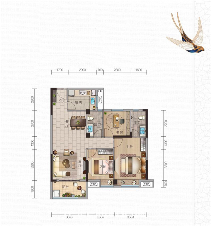 107.55㎡3房2厅2卫 户型图