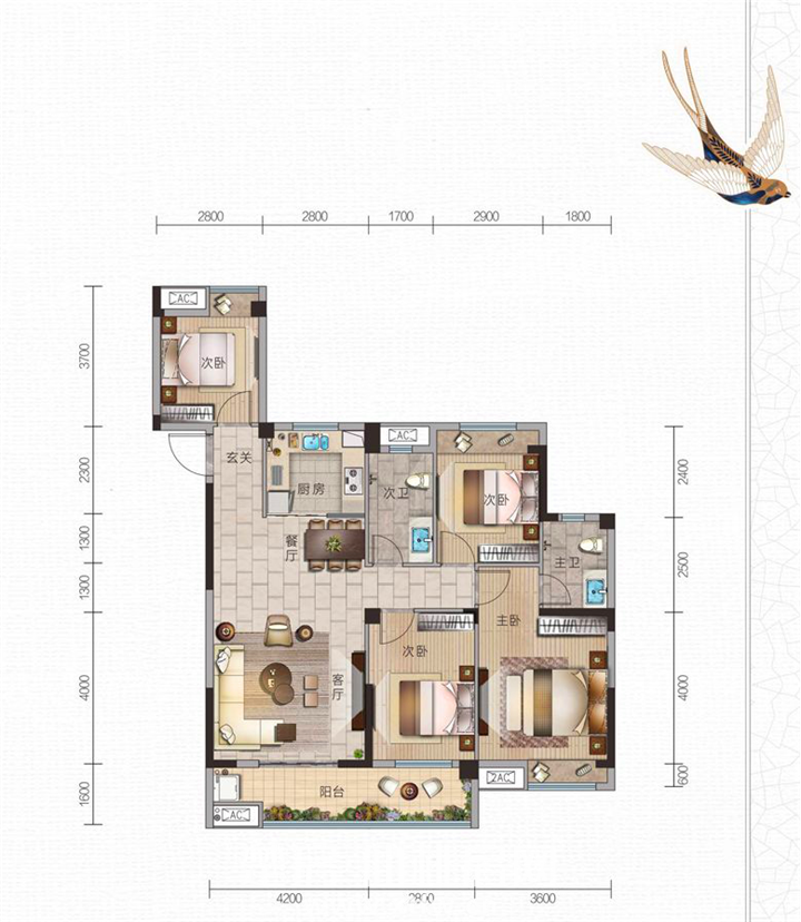 建面约107-130㎡三室/四室宽境大宅。