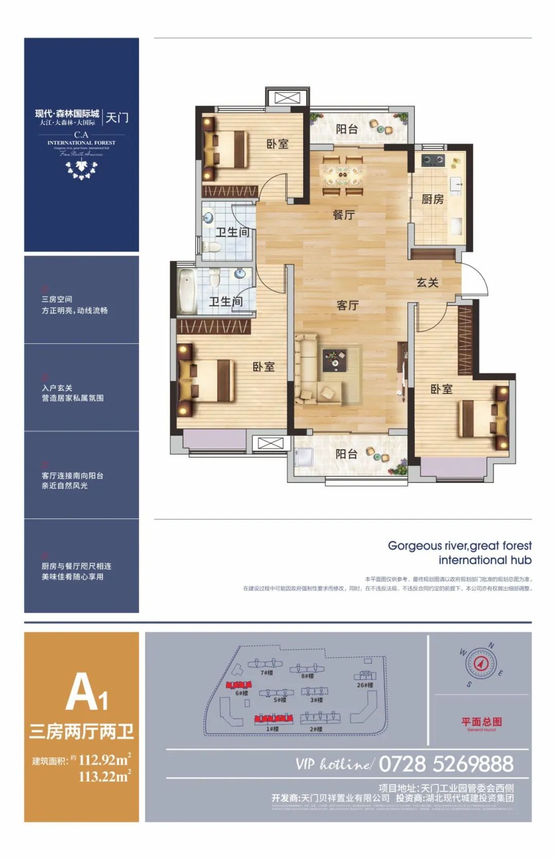 现代·森林国际城|仙北113m²户型,三开间一字朝南铺排
