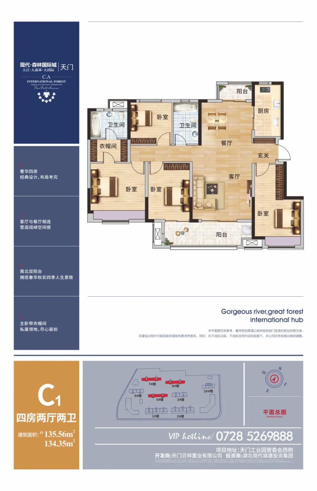 现代·森林国际|仙北打造的建面约135㎡阔绰4室户型,整体格局方正,合理空间比例使户内更为通透明朗。