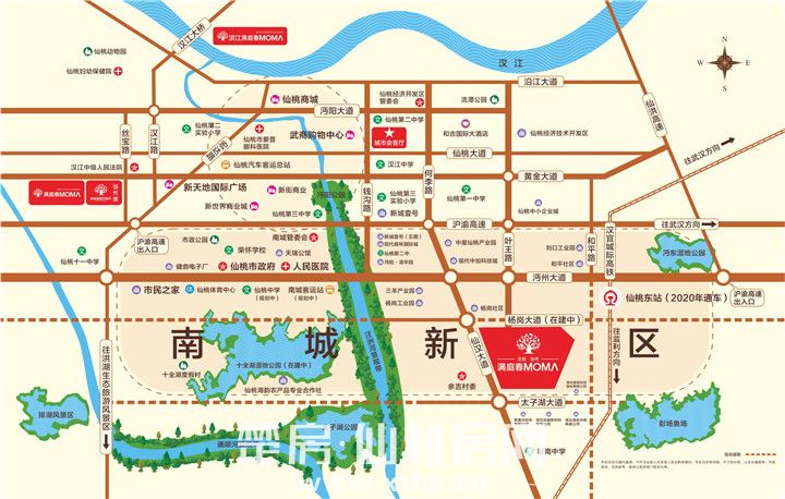 多维交通:紧邻区域主干道仙汉路,周边道路在逐步完善中,随着城际仙桃站已正式开通距离,交投·满庭春 仅5.1公里(直线距离),囊括了生活所需的全部配套,打造便捷生活圈。