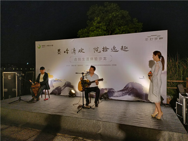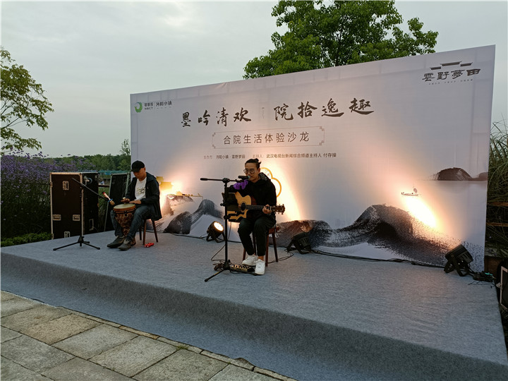 在民谣歌手动听的歌声与武汉电视台新闻综合频道主持人-付存操主持下,本次合院生活体验沙龙正式开始。
