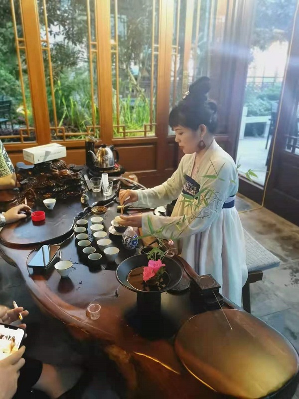 在茶艺品鉴环节中,来自专业机构的高级茶艺师侯可馨,生动讲解了茶叶的品评技法和茶文化的渊源,为雅士们的日常生活品位与交际所需提供参考答案。而接下来的茶艺表演,则展示出中国传统文化的另一种魅力。