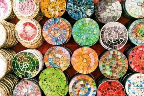 现场准备形状各异的马克杯垫
