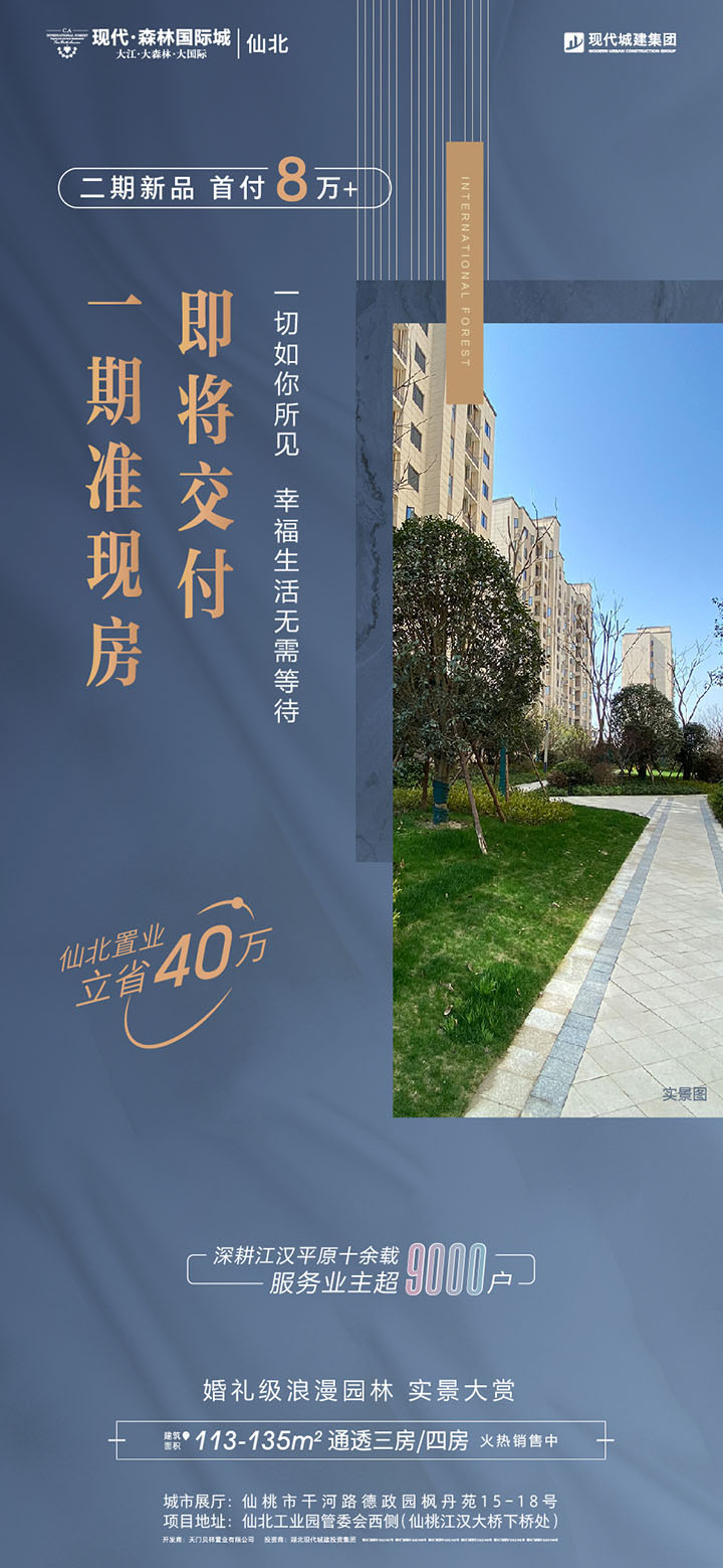 总有一些美好需要等待,总有一些幸福值得期许!现代·森林国际城|仙北历经时光淬炼,从图纸到实景呈现,从造梦未来到理想人居,终于要以盛景全呈之姿,迎接业主荣耀归家。历经至甄打磨,幸福如约而至。2022年6月,现代·森林国际城|仙北即将盛大交付,幸福生活画卷即将缓缓展开。