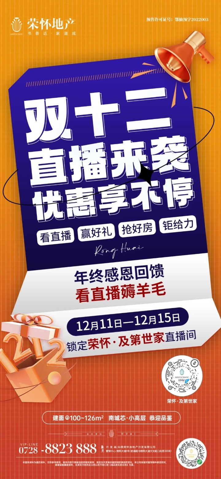 5.本活动信息仅供参考,相关细则以活动当天实际呈现为准,仙桃荣怀房地产开发有限公司在法律法规的范围内拥有本次活动内容的修改权以及解释权。