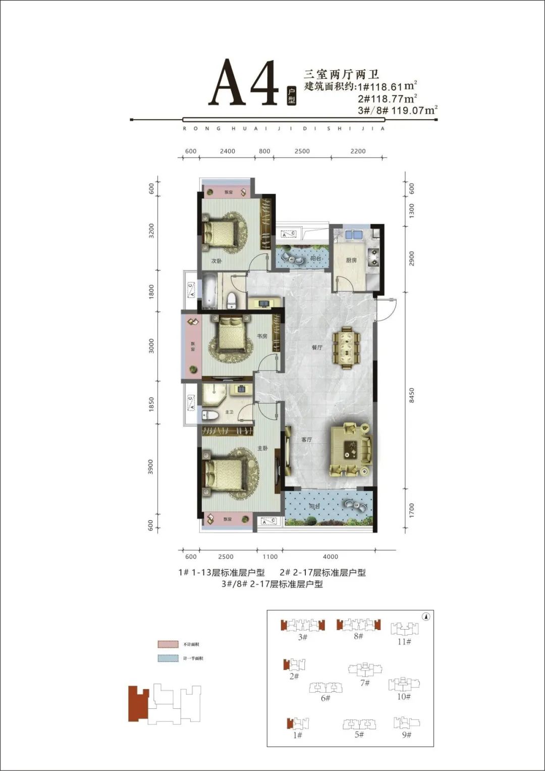 建面约119.07㎡户型|三房两厅两卫双阳台