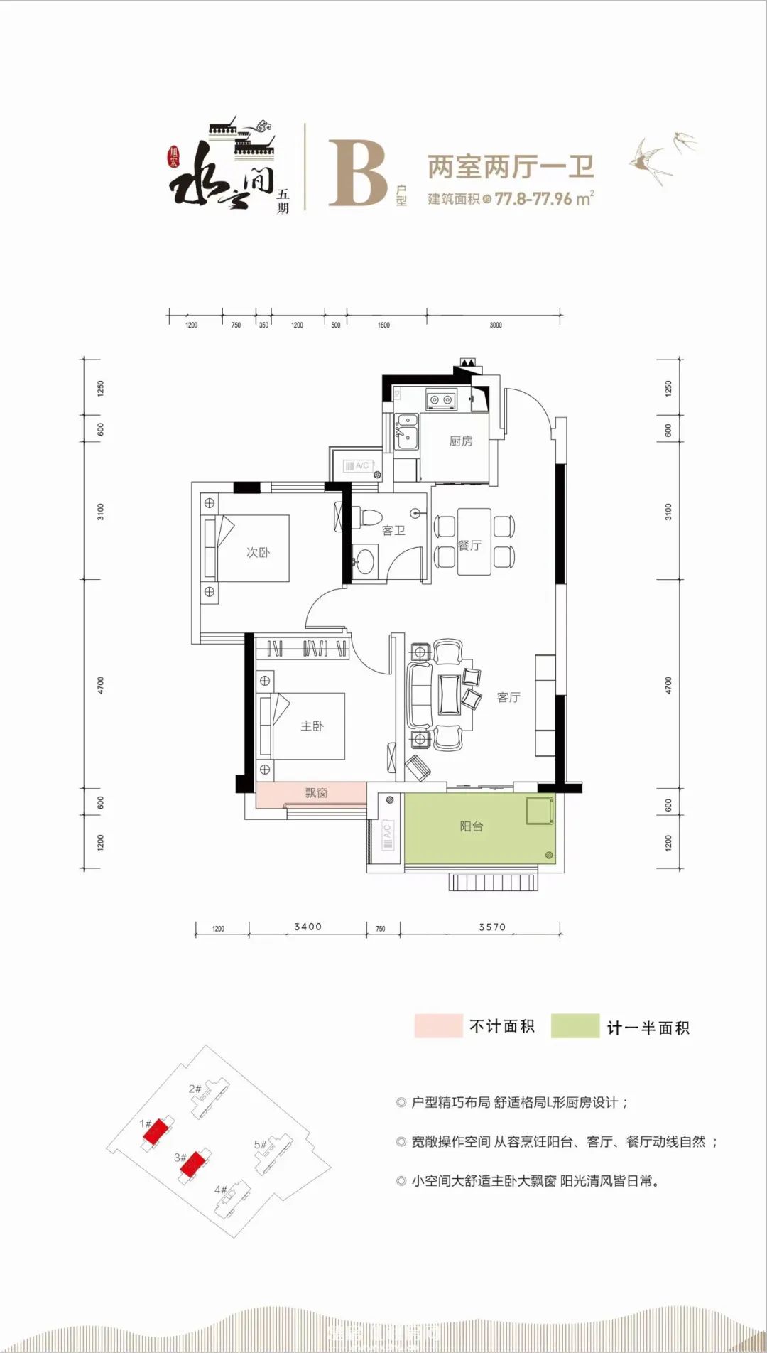 项目精心打造建面约77㎡轻盈小户型
