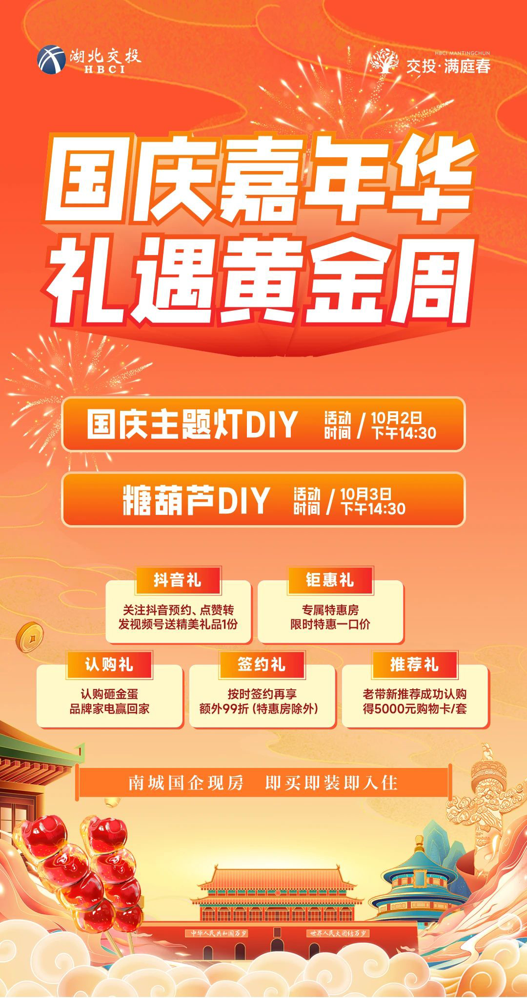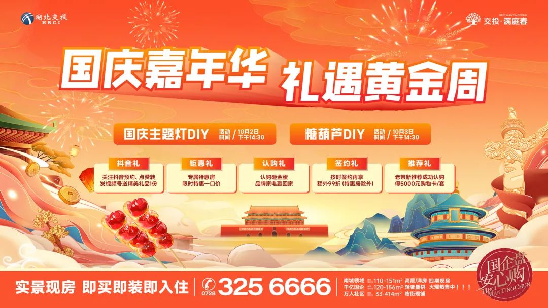 为回馈广大客户的厚爱,交投满庭春在国庆期间特别推出五重购房好礼,让您购房无忧,惊喜连连: