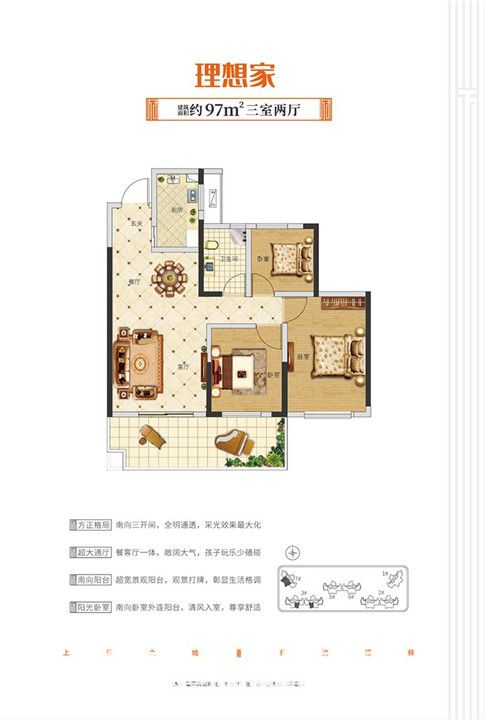 5. 97-126㎡的三/四房户型可满足大部分置业者的需求,其97㎡、100㎡的三房户型也确实做的不错,对比周边楼盘有一定的优势。