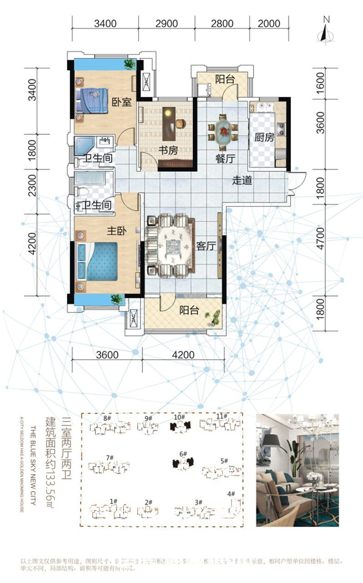 ①蓝天新城是续和合国际城之后,重点打造的南城楼盘,整体规划、产品设计、景观塑造和质量监督等方面,还是有保障的。