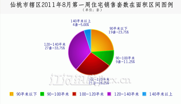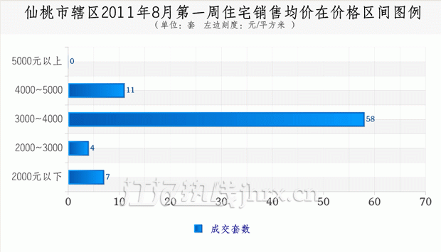 2011年八月周(8月1号-8月7号),据仙桃房网研究的统计数据显示,仙桃市辖区商品房共销售套数84套,销售面积8741.4平方米,销售总金额30802738.28元,销售均价3523.78元/平米;其中住宅销售80套,销售面积8562.83平米,销售均价3487.72元/平米。