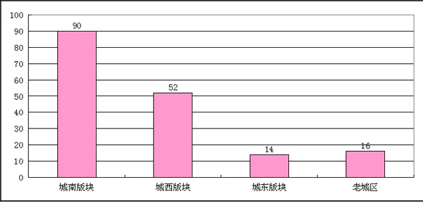 城南版块依然保持地位,上周住宅成交90套,其次是城西版块52套。