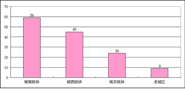 城南版块依然保持地位,上周住宅成交59套,其次是城西版块45套。