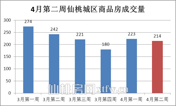 4月二周仙桃楼市商品房成交量依然保持在200套以上,楼市热情未减。