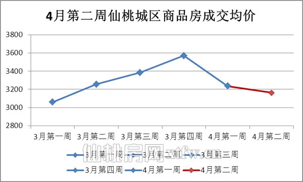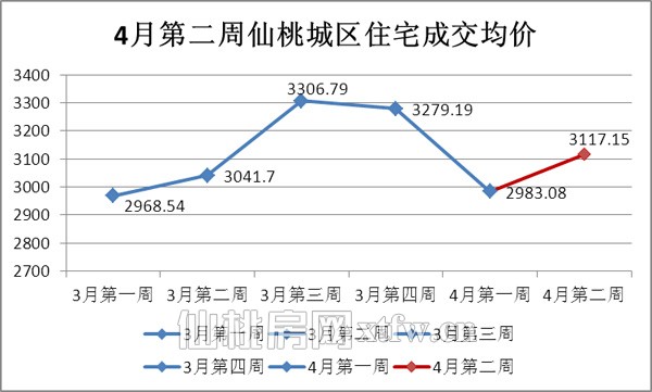图三:四月二周仙桃城区商品房成交均价(元/平方米)