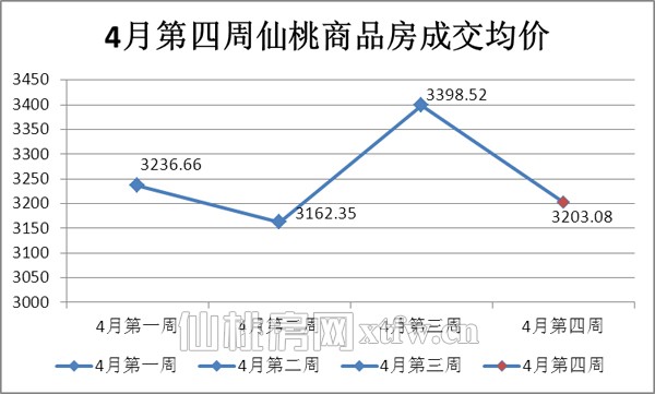 4月四周仙桃商品房成交均价为3203.08元/平米,环比下降5.75%。均价起伏不大,仙桃商品房成交均价在3200左右。