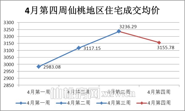 四月四周,仙桃城区住宅成交均价在4月前三周持续增长的情况下有所下降,但总体波动不大。四月四周仙桃地区住宅成交均价为3155.78元/平米。