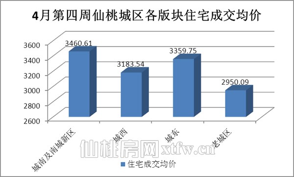 4月四周(2013-04-22日到2013-04-28日)仙桃城区销售总交易记录179套,四月销售量略呈下降趋势。4月四周仙桃城区商品房销售均价为3203.08元/平米,均价基本保持稳定。这一周销售的商品房中住宅为166套,销售面积18447.41平方米,均价 3155.78元/平米;非住宅销售13套数,销售面积1549.62平方米,均价3766.08元/平米。