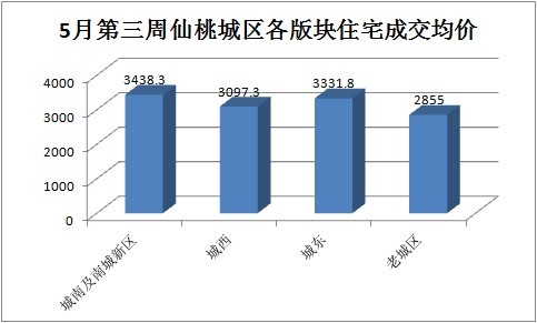 图三:5月三周仙桃城区各版块住宅成交均价(元/平米)
