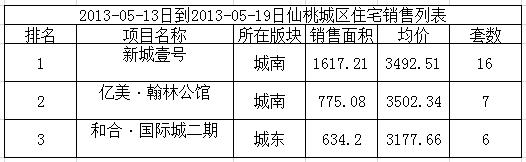 图一:5月三周仙桃城区住宅销售排行榜TOP3