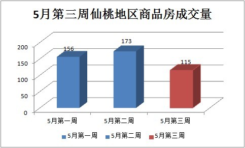 相比月二周,五月三周的销量有所下降,这周销售商品房115套。