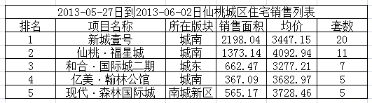 图一:上周(5.27~6.2)仙桃城区住宅销售排行榜TOP5
